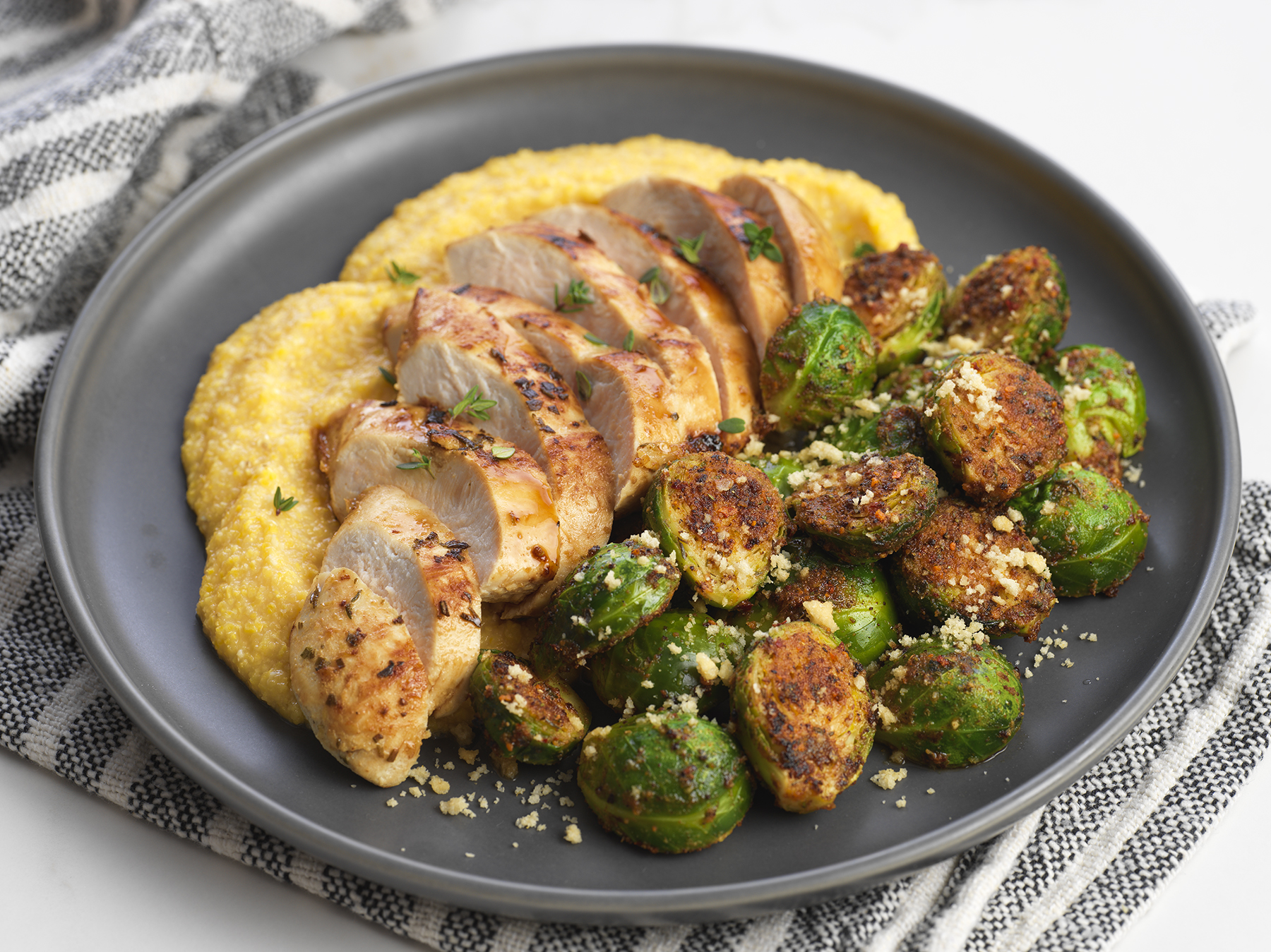 The savory and herbaceous Sun-Dried Tomato Brussels Sprouts are best paired with neutral lean proteins.