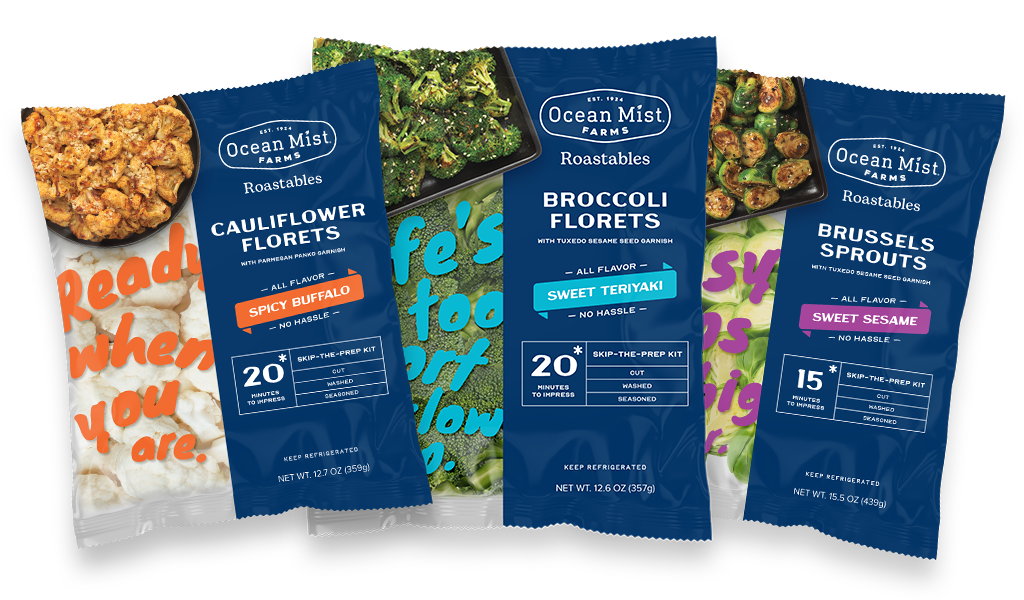 Ocean Mist Farms® Roastables Ready-To-Roast Kits have everything you need for a delicious, home-prepared meal in minutes! Using your favorite cooking oil, just toss, roast in the oven and serve.